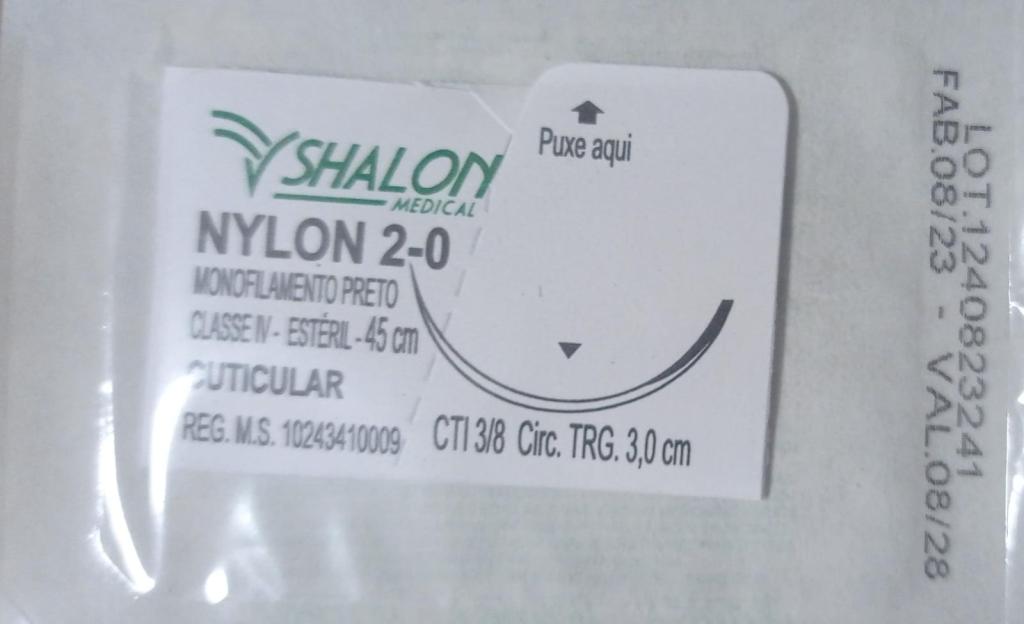 FIO NYLON COM AGULHA ( 2-0 ) MONOFILAMENTO 45 CM